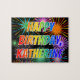 Esta vibrante, excitante, design de quebra-cabeça de quebra-cabeça com tema de aniversário tem a mensagem "FELIZ ANIVERSÁRIO, KATHERINE" tendo um espectro colorido de arco-íris inspirado num padrão de gradação, e um fogo de artifício celebratório animado inspira um padrão de fundo. Uma quebra-cabeça vibrante como esta pode ser uma maneira divertida de enviar desejos de aniversário a alguém chamado Katherine. [~Z0000465]