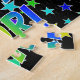 Este design de quebra-cabeça de quebra-cabeça animado e divertido, com tema de aniversário, exibe a mensagem "HAPPY BIRTHDAY, LORI" com os personagens que têm um espectro colorido de arco-íris inspirado em um padrão de gradação, junto com um campo excitante de estrelas como padrão de fundo. Um quebra-cabeça empolgante como este pode ser uma maneira divertida de enviar desejos de aniversário a alguém chamado Lori. [~Z0000468]