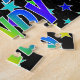 Este animador e animado design de quebra-cabeça de quebra-cabeça com tema de aniversário exibe a mensagem "HAPPY BIRTHDAY, MINDY" com os personagens que têm um espectro colorido de arco-íris inspirado em um padrão de gradiente, além de uma estrela divertida forma o padrão de fundo. Um quebra-cabeça vibrante como este pode ser usado para enviar desejos de aniversário a alguém chamado Mindy. [~Z0000468]
