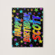 Este animador e animado design de quebra-cabeça de quebra-cabeça com tema de aniversário exibe a mensagem "HAPPY BIRTHDAY, SCOTT" com os personagens que têm um espectro colorido de arco-íris inspirado em um padrão de gradação, junto com uma estrela vibrante molda o plano de fundo. Um quebra-cabeça vibrante como este pode ser usado para enviar cartões de aniversários a alguém chamado Scott. [~Z0000468]