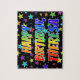 Este vibrante, vivo, design de quebra-cabeça de quebra-cabeça com tema de aniversário exibe a mensagem "HAPPY BIRTHDAY, THERESA" com os personagens que têm um espectro colorido de arco-íris inspirado em um padrão de gradiente inspirado, além de um padrão de fundo de campo estelar excitante. Um quebra-cabeça colorido como este pode ser usado para enviar uma mensagem de saudação de aniversário a alguém chamado Theresa. [~Z0000468]