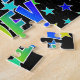 Esta design de quebra-cabeça de jigserra divertida, empolgante e com tema de aniversário tem a mensagem "HAPPY BIRTHDAY, ZOEY" com os personagens que têm um espectro colorido de arco-íris inspirado em um padrão de gradação, junto com um campo vivo de estrelas como padrão de fundo. Um quebra-cabeça excitante como este pode ser usado para enviar cartões de aniversários a alguém chamado Zoey. [~Z0000468]