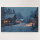 Every element of this puzzle is designed with ultra-detailed texture work, from snow-covered rooftops and wooden timber walls to softly drifting snowflakes and glowing village lights reflecting across icy ground. The layered lighting and intricate village layout provide a satisfying puzzle challenge while producing a stunning finished image perfect for display.