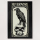 Ilustração gótica de um corvo no crânio. O texto Nunca mais é uma referência a Edgar Allan Poe's The Raven.