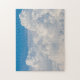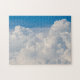 Esta design apresenta uma bela imagem de nuvens cumulus contra um céu azul.