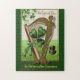 quebra-cabeça de quebra-cabeça de 11" x 14" com uma imagem vintage da Harp ouro de Erin enfeitada com um arco verde e um shamrock verde bonito. Um chapéu preto no topo está no chão ao lado dele com uma banda de chapéu verde. Veja toda a Rua do dia de Patrick na categoria HOME na seção HOLIDAYS.