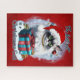 Esta ilustração encantadora mostra um gato branco-preto vestindo um chapéu de Papai Noel, sentado sobre uma turquesa presente com flocos de neve sobre ele. O presente tem uma fita vermelha. O fundo é vermelho com flocos de neve brancos e azuis e Enfeites de natal. O texto "O melhor presente é um gato de Natal" é escrito sobre o gato. Esta ilustração seria um belo quebra-cabeça de quebra-cabeça para amantes de gatos e para qualquer um que aprecie a estação festiva.