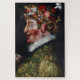 Giuseppe Arcimboldo (1526 ou 1527 - 11 de julho de 1593) foi um pintor italiano mais conhecido por criar cabeças imaginativas de retratos feitos inteiramente de objetos como frutas, vegetais, flores, peixes e livros. Essas obras formam uma categoria distinta de suas outras produções. Era pintor de um tribunal convencional de retratos de três santos imperadores romanos em Viena e Praga, produzindo também sujeitos religiosos e, entre outras coisas, uma série de desenhos coloridos de animais exóticos na menagerie imperial. Especializou-se em composições simbólicas grotescas de frutas, animais, paisagens ou vários objetos inanimados dispostos em formas humanas. Os retratos da vida-morta foram claramente pretendidos, em parte, como curiosidades caprichosas para divertir o tribunal, mas os críticos especularam como o grau de noivado grave com o neoplatonismo renascentista ou outras correntes intelectuais que têm. Citação: Wikipedia