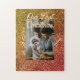 Quebra-cabeça Our first Christmas orange red glitter photo year