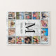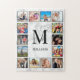 Crie seu próprio quebra-cabeça de colagem personalizada de 12 fotos com suas imagens personalizadas, monograma e nome em um na moda elegante fundo de mármore branco.