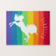 Padrão do arco-íris unicórnio branco personalizado, bonito quebra-cabeça único personalizado apresenta um design vermelho, laranja, amarelo, verde-claro, azul e roxo em um padrão horizontal na frente com uma silhueta de um unicórnio branco no centro e um nome personalizado acima do unicórnio. Que presente único e único para aquela garota especial na sua vida. Clique em "Personalizar esta modelo" para alterar o nome e a cor e o estilo da fonte. Se precisar de ajuda para a personalização, envie-me um e-mail para @gmail.com. Obrigados para parar em www.zazzle.com/CuteKidStuff. ©Karen Hall
