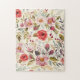 Elegante Quebra-cabeça de Jigsera apresentando um padrão floral de flor selvagem com flores rosa e vermelhas sobre um fundo creme. Um design bonitinho para uma menina.