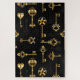 Padrão perfeito de chaves antigas, douradas e silhuetas em fundo preto.