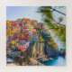 Quebra-cabeça com a pintura colorida das lindas casas de penhasco de Cinque Terre, na Ligúria, Itália.