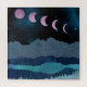 Esta linda paisagem de abstrato mostra uma cena de montanha noturna com uma lua rosa-forte mostrada em fases que se estendem sobre o céu. O design usa cores azul, ciano, rosa e cinza.