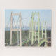 Um quebra-cabeça de quebra-cabeça desafiador, de 16 x 20 polegadas, que apresenta uma imagem cênica e paisagística das pontes estreitas Tacoma que se estendem sobre o canal estreito de som Puget, Washington, junto com uma visão das montanhas Olimpiadas no fundo. Divertido para toda a família!