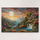 Uma lua de cheio sobe à medida que o sol se põe sobre uma paisagem fantástica neste quebra-cabeça de serra. Uma casa de mansão num penhasco acima de uma bela cachoeira que despeja em um rio que flui em um mar, à medida que árvores e flores desabrocham ao redor.
