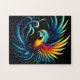 Um papagaio místico vívido e colorido, tropical num fundo negro.