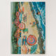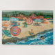 Passe um dia na praia mesmo que não consiga ir à praia! Este quebra-cabeça de serra-de-vidro caprichoso apresenta o trabalho de arte de Jen Norton dos Papais noeis Cruz Beach Boardwalk e banhistas desfrutando dos raios quentes da Califórnia.