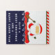Quebra-cabeça de Natal engraçado com Papais noeis acampados em uma canoa, caiaque de caiaque e citação criativa de Natal.