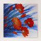 Uma pintura acrílica de papoulas vermelhas, num campo de relva azul abstrata.