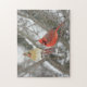 Pares de cardeais do norte (cardinalis dos cardinalis) em uma queda da neve fraca ** nota: Leve granulosidade, melhor em tamanhos menores