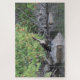 Quebra-cabeça com a natureza, uma ave, árvores, água.