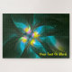 Uma imagem fractal multicolorida parecida com uma ave da selva. A cor primária é verde; o azul e o amarelo também são destacados. Personalize adicionando seu próprio texto.