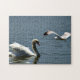 Foto de um pássaro voando sobre um cisne no lago Morton criada em um quebra-cabeça para o prazer de sua família.