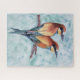 Lindas e belas Aves Tropicais sentadas em uma árvore - azul, ferrugem e amarela são cores apresentadas nestes dois pássaros, Quebra-cabeça de Jigseru - ... horas de diversão com a família e amigos e um presente de excelente para aniversários. Imagens foram pintadas em aquarelas pelo designer