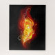 Pena de pavão brilhante feita de fogo e chamas sobre fundo negro.