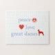 O teu cão Dane é o teu melhor amigo? O Grande Dane é uma das suas raças favoritas de cães? Mostre o seu amor por este canino com estes bonitos presentes de Paz, Amor e Grandes Dinamarqueses, t-shirts e roupa.