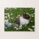 Quebra-cabeça Pequeno Coelhinho Castanho e Branco em Flores