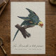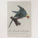 Esta elegante ilustração de história natural retrata a agora extinta arara-carolina, um papagaio outrora vibrante nativo das regiões leste e centro-oeste dos Estados Unidos. Empoleirado em um galho texturizado, o pássaro é mostrado em uma pose dinâmica com asas parcialmente estendidas, destacando a camada intrincada de sua plumagem. Seu corpo é principalmente um verde rico, sutilmente sombreado para sugerir profundidade e suavidade, enquanto a cabeça apresenta um contraste marcante de amarelo brilhante e uma face laranja-avermelhada - uma das características mais reconhecíveis da espécie.