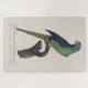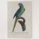Esta elegante ilustração retrata um vibrante periquito empoleirado graciosamente em um galho curvo, renderizado no refinado estilo naturalista associado a Jacques Barraband. A obra de arte, intitulada La Perruche à front rouge, mostra uma atenção meticulosa aos detalhes da plumagem, com tons verdes ricos dominando o corpo, contrastados por uma testa avermelhada laranja impressionante e uma coroa azulada. A longa cauda afilada e o bico curvo do pássaro são característicos dos periquitos, enfatizando tanto o equilíbrio quanto a precisão anatômica típica da ilustração ornitológica do final do século XVIII e início do século XIX.