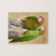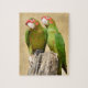 Quebra-cabeça periquito Mitred no cartão-postal poste de madeira