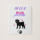 "PUG PRINCESS" com um punho preto, impressão de pata e quebra-cabeça de nome personalizado.
