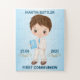 O quebra-cabeça da Primeira Comunhão é desenhado com um menino giro e moreno segurando bíblia. Você pode personalizar o nome adicionar seu próprio texto clicando na opção PERSONALIZAR. Este quebra-cabeça será o presente ideal para o menino na sua primeira comunhão sagrada.