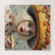 Uma mulher engraçada com um chapéu sanduíche de cogumelo e um sanduíche em suas mãos AI gerou arte