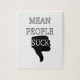 Tipografia branca e preta. Uma mão humana com o polegar para baixo. Texto: Pessoas Médias Suck.