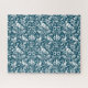 Quebra-cabeça num William Morris, Art Nouveau, design de papel de parede de faisões e lebres entre folhas, vinha e flores - branco sobre fundo azul de indigo / denim