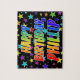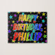 Esta vibrante, excitante, design de quebra-cabeça de quebra-cabeça com tema de aniversário tem a mensagem "HAPPY BIRTHDAY, PHILLIP" com os personagens que têm um espectro colorido de arco-íris inspirado em um padrão de gradação, além de um padrão de fundo vivo de campo estelar. Um quebra-cabeça vibrante como este pode ser uma maneira divertida de enviar desejos de aniversário a alguém chamado Phillip. [~Z0000468]