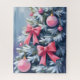 Quebra-cabeça Pink Christmas Tree | Bows Ornaments Watercolor