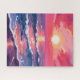 Pink Sunset Purple Ocean Waves Watercolor Painting Jigsaw Puzzle
