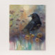 Quebra-cabeça Pintado à Mão Raven com Flores Selvagens