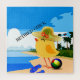 Pintinho aposentado na praia em seu chapéu de sol e flip-flops