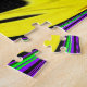 Um abstrato original em cores vibrantes vívidas e vibrantes néon de cor roxa, amarela e verde, com uma abertura de laranja e azul jogada dentro. Este é um legal desafio quebra-cabeça que faz um muro digno pendurado quando acabado. #bold #selvagem #colorido