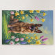 Quebra-cabeça Pintura das flores da primavera do german shepherd