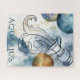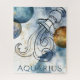 Aquário, o portador de água é o signo astrológico 11 no zodíaco e representado aqui com um jarro de água desenhado à mão em preto e apresentando planetas azuis e dourados sobre um fundo azul-sonho com estrelas douradas e flores. Este é um presente único para um entusiasta da astrologia ou alguém nascer sob o signo do Ar de Aquário - de 20 de janeiro a 18 de fevereiro.