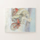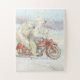 Adorable polar bear family riding a motorcycle in the snow puzzle for kids or those young at heart!